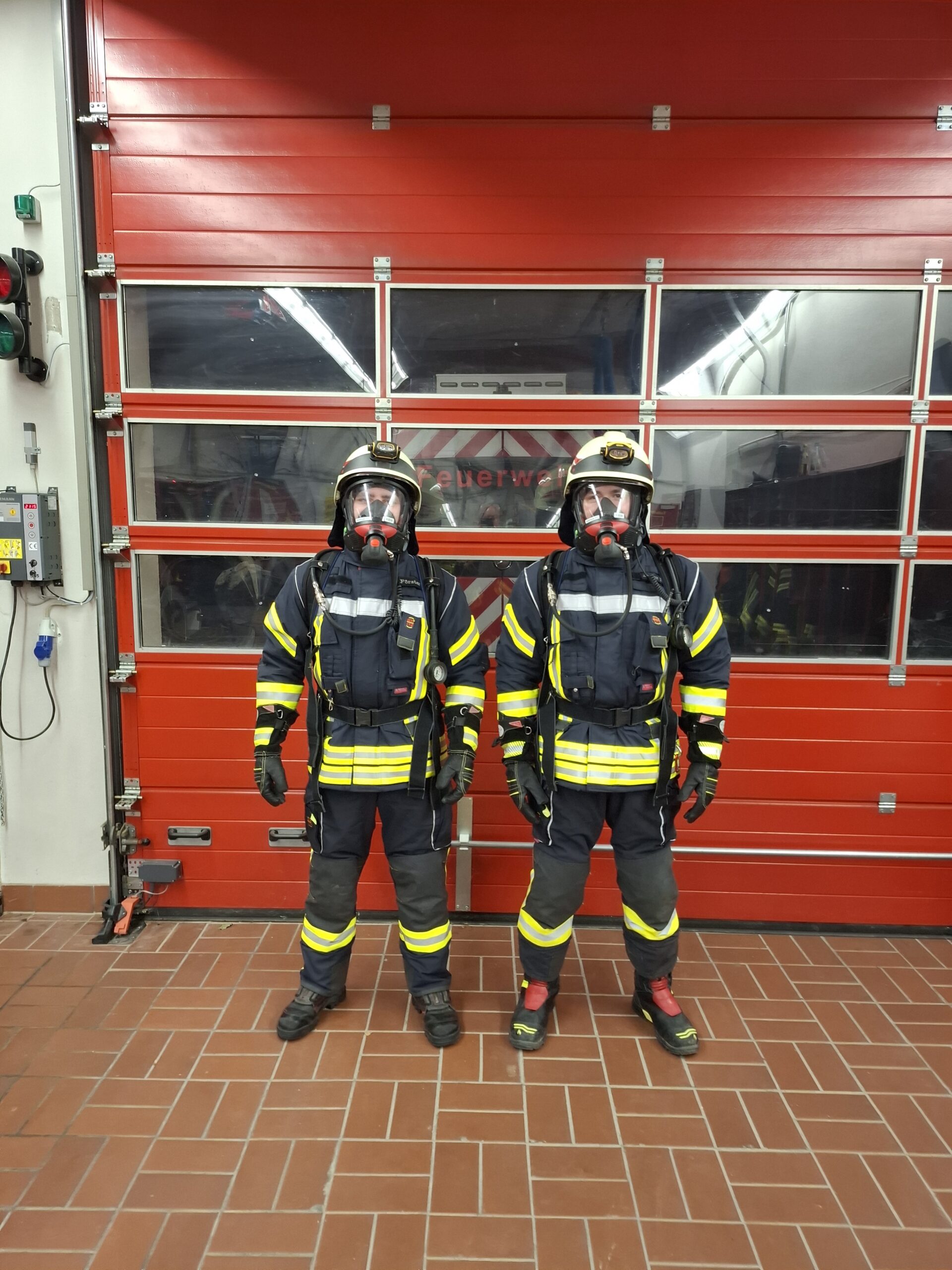 • einer Atemschutz Überjacke, die der hohen Hitzeeinwirkung und dem Eindringen von Wasser entgegenwirkt,